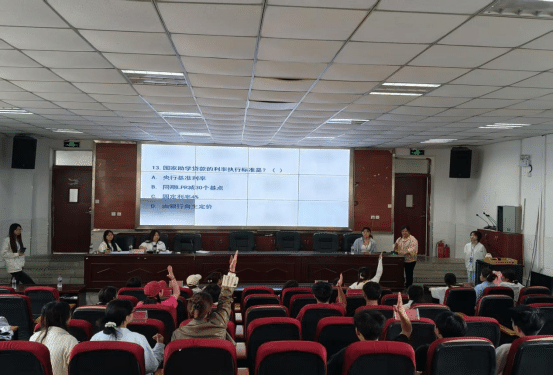 抢答环节将活动推向高潮,内容聚焦金融防诈骗、不良校园贷风险识别、资助政策应用场景分析等实践性议题。现场气氛热烈,学生通过团队协作与快速反应展现了对政策的灵活运用能力。例如,针对“助学贷款逾期的影响”“勤工助学权益保障”等题目,选手结合案例分析给出精准解答,赢得评委们一致认可。