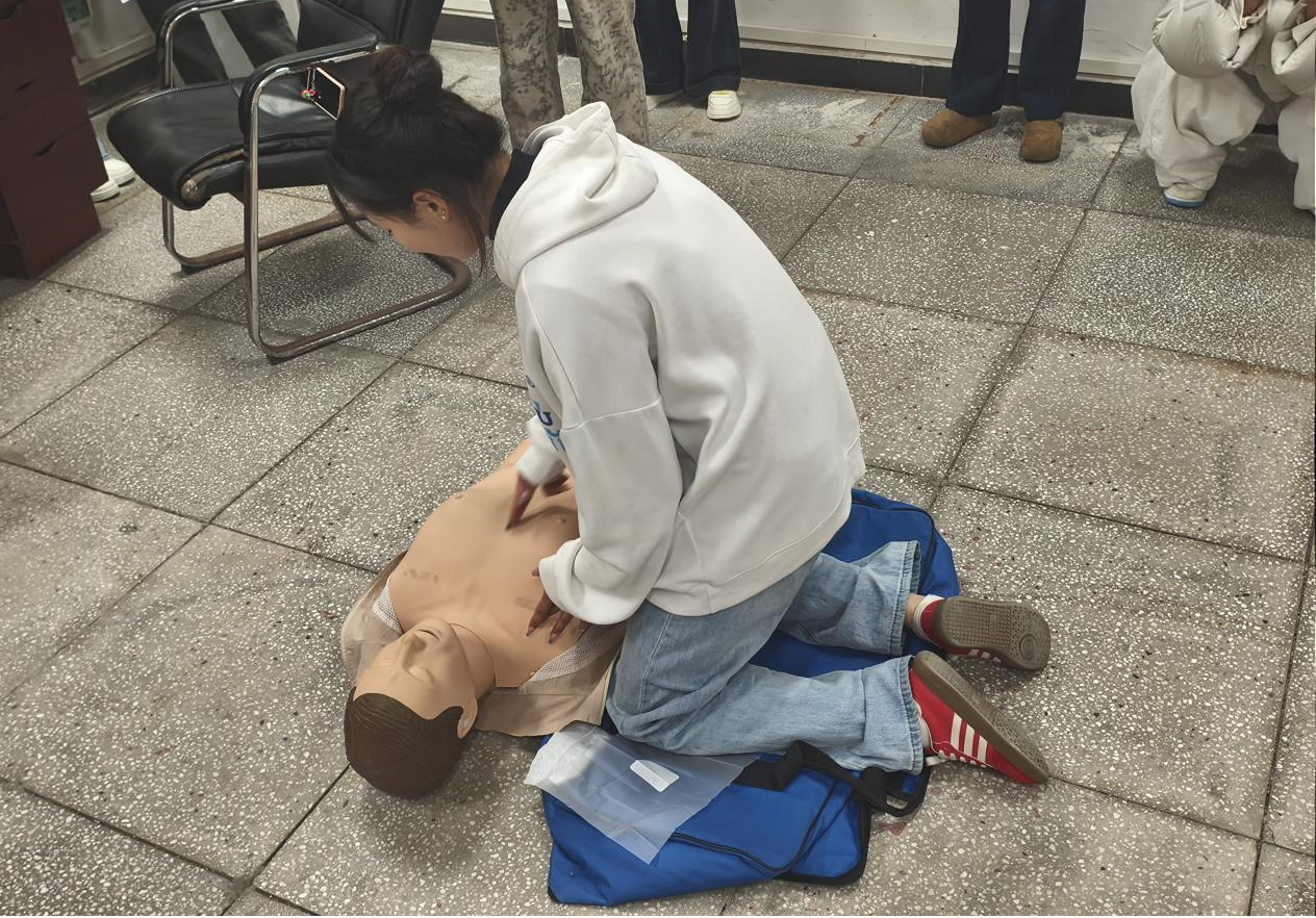 培训内容紧密围绕校园及日常生活中的应急救护需求科学设置,涵盖红十字运动发展历程、应急救护基础概论、心肺复苏术(CPR)标准流程、自动体外除颤器(AED)规范使用、气道异物梗阻海姆立克急救法,以及创伤止血、包扎、固定、搬运等核心急救技能。为确保培训实效,本次培训创新采用“理论讲解+示范操作+分组实操+精准纠错”的立体化教学模式,授课师资结合真实应急救援案例,生动拆解每个急救环节的关键要点。在实操练习环节,师生们分组利用模拟人开展心肺复苏、创伤包扎等实战演练,师资团队逐组巡视指导,对动作不规范之处及时纠正,确保每位学员都能熟练掌握规范操作流程。